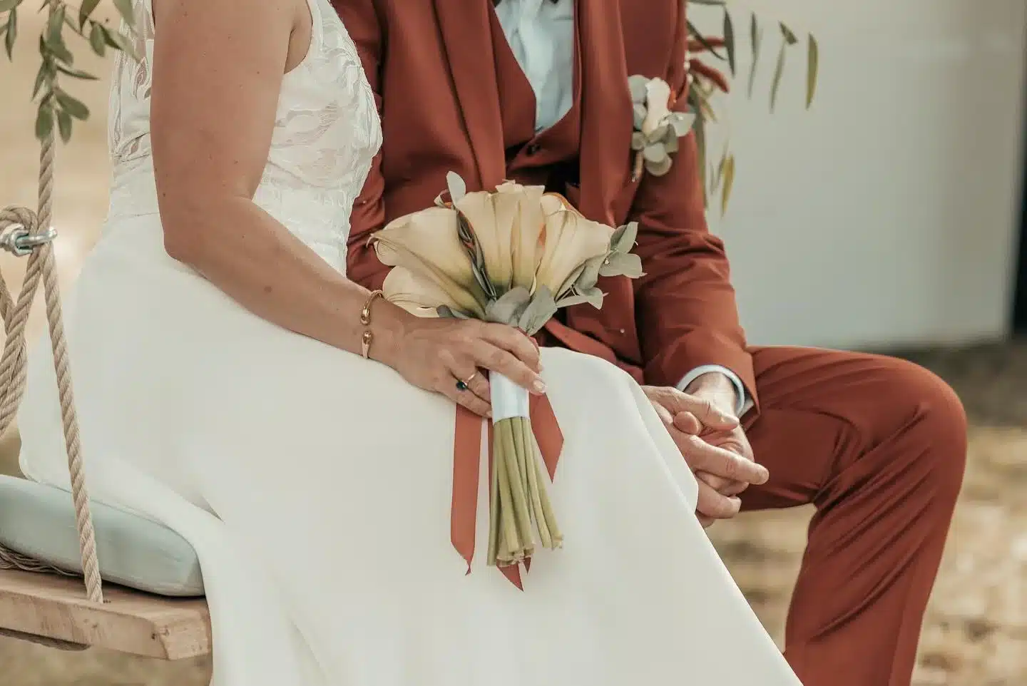 La décoration florale de la cérémonie mérite une réflexion approfondie. Pour un mariage religieux, nous habillons l’église avec des compositions adaptées au caractère sacré du lieu : arrangements floraux pour l’autel, décorations de bancs, centres de table pour le livre d’or. Pour une cérémonie laïque, l’arche de fleurs devient la pièce maîtresse devant laquelle vous échangerez vos vœux. Nous la concevons dans un style qui reflète votre personnalité : bohème avec pampa et fleurs séchées, champêtre avec verdure abondante, élégant avec roses blanches et lys, ou exotique avec anthuriums et orchidées.